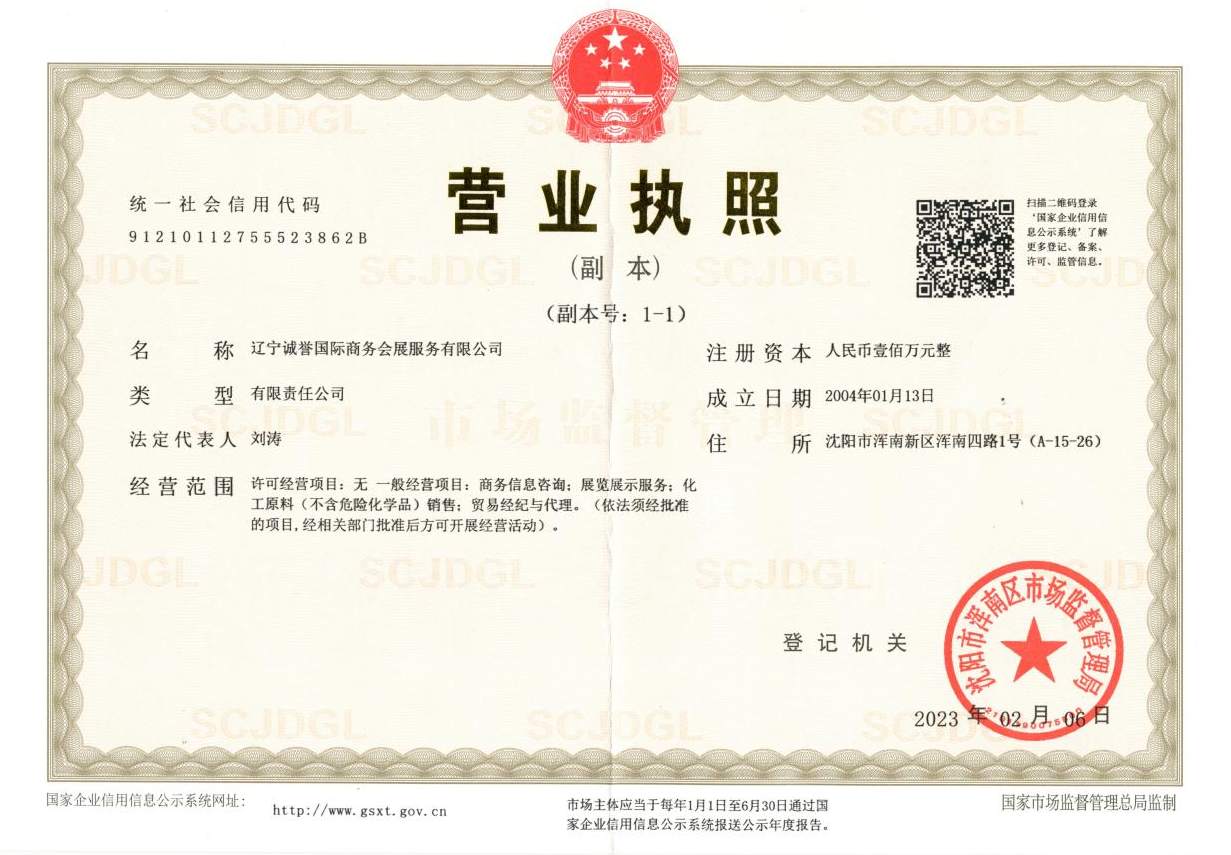 辽宁诚誉国际商务会展服务公司是一家集展位预定、展位设计搭建、参展商旅配套、产品国际认证咨询、海外仓储推介、国际贸易承办等一体化专业服务机构。自2004年成立至今已20年,诚誉会展位于沈阳市浑南区,紧邻沈阳高速南出口,与沈阳签证中心同层对门,地段优越,交通便利。